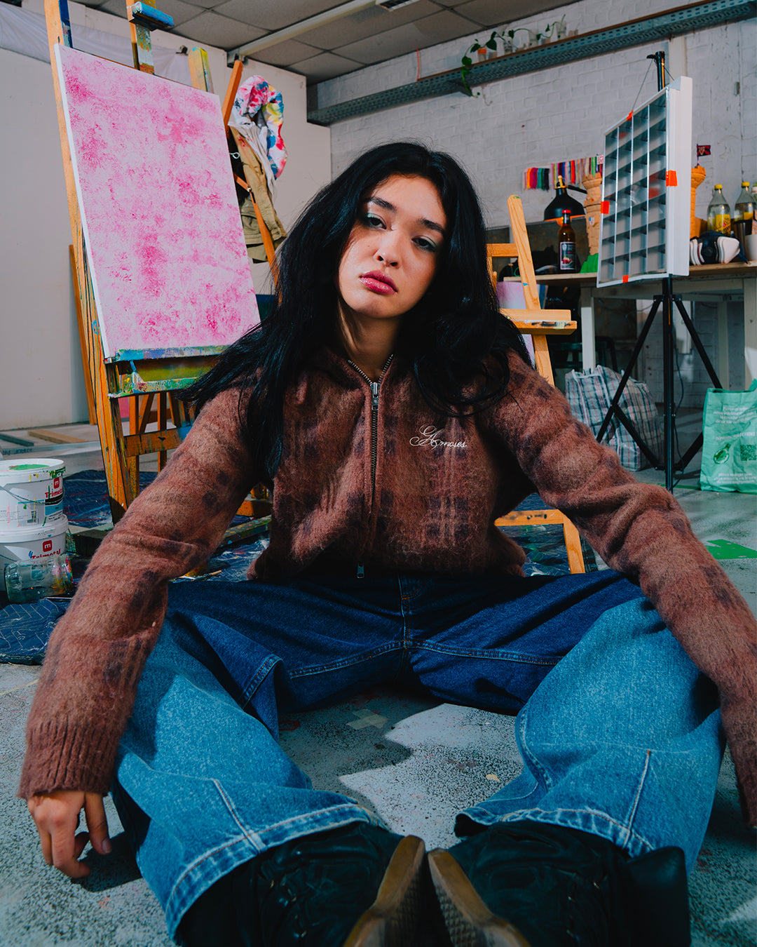 Ce zip-hoodie tricoté a été créé par Amoses, chez nous à Lille.